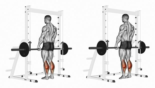 Выставите расположение валика по длине ваших ног. Он должен находиться под ахилловым сухожилием. Колени не должны сильно свисать со скамьи или полностью лежать на ней. Снаряд поднимаем без рывка, ноги полностью не выпрямляем